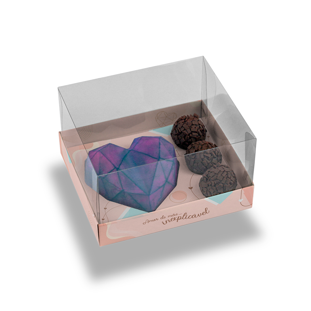 Caixa Coração Lapidado de 200G +3 Doces Mãe Rosa - Com 10 unidades