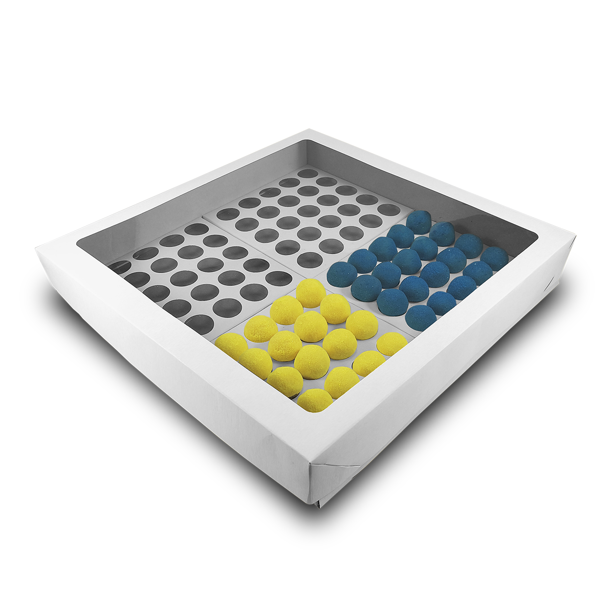 4 Berços em papel com 25 doces cada, totalizando 100 Doces.
